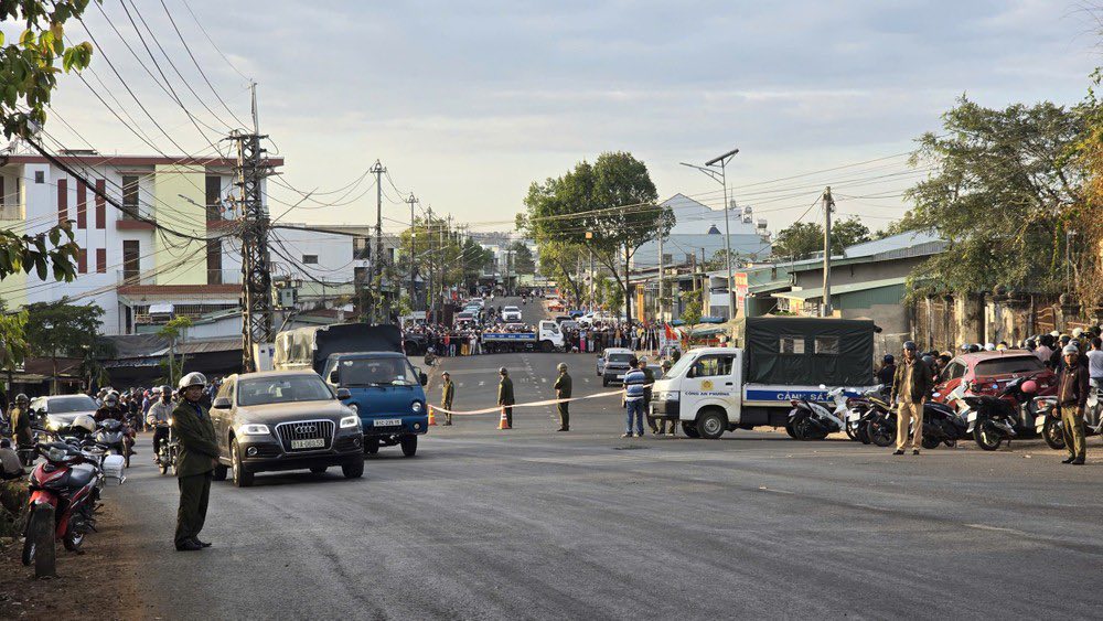 Tại căn nhà 557 đường Nguyễn Viết Xuân, lực lượng công an huy động hàng chục chiến sĩ công an bao vây ngôi nhà, giăng dây chặn hai đầu. Sự việc thu hút nhiều người dân hiếu kỳ tụ tập đến theo dõi.
