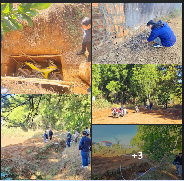 Theo ghi nhận tại hiện trường, vị trí chôn giấu xe máy được đào hố vuông vức, nằm sâu dưới rãnh ngăn cách giữa Ban Quản lý rừng phòng hộ Bắc Biển Hồ và khu công nghiệp Diên Phú. Hố sâu hơn một mét, dài 1,5 mét.