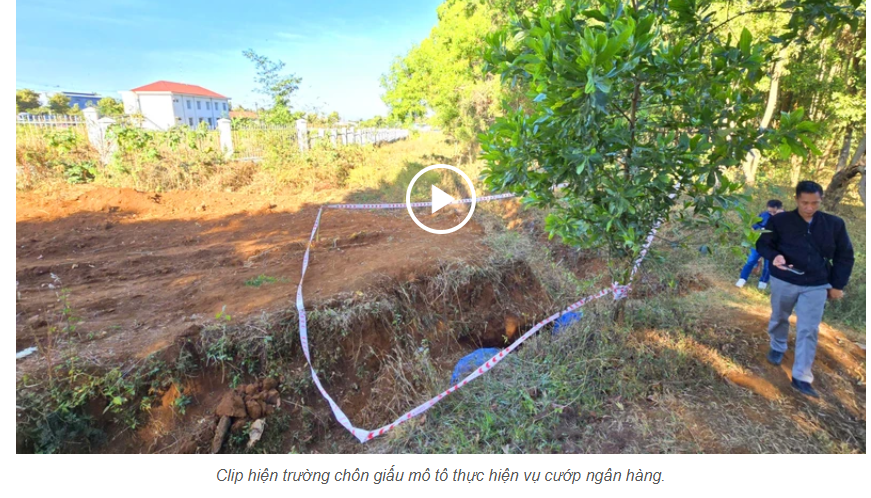 Sáng 26-1, phóng viên báo Pháp Luật TP.HCM đã có mặt tại hiện trường chôn giấu chiếc mô tô là phương tiện được dùng thực hiện vụ cư.ớ.p ngân hàng xảy ra tại phường Hội Phú, tỉnh Gia Lai.