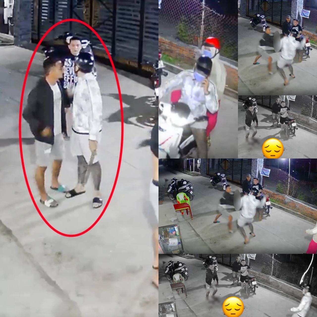 Sau đó, một nam thanh niên từ trong nhà bước ra đường nói chuyện rồi xảy ra xô xát với một người trong nhóm. Trong lúc ẩu đả, nam thanh niên bị đối phương dùng m/aaaã tấoo/u chém bị thương nặng và tuvo0lng sau đó.