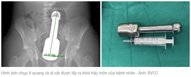 Các bác sĩ quyết định lấy dị vật qua đường hậu môn để tránh mổ mở ổ bụng.